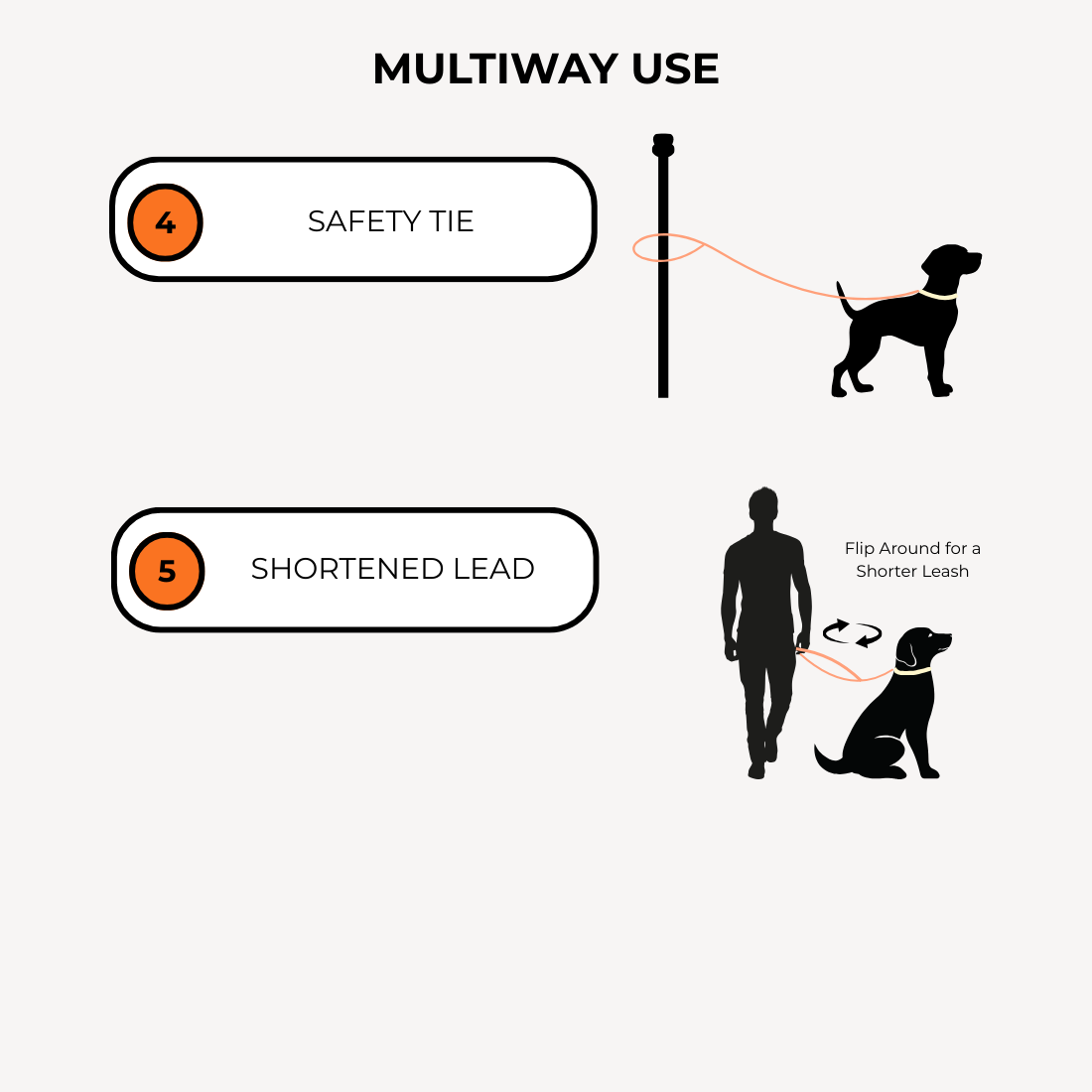 Designed for ultimate flexibility and utility. Use the Leash handheld regularly and in ONE EASY MOVE, hook it up the Extender to transform it into a Multiway Hands-Free Leash system. It's so convenient and flexible! Use it when you need it!