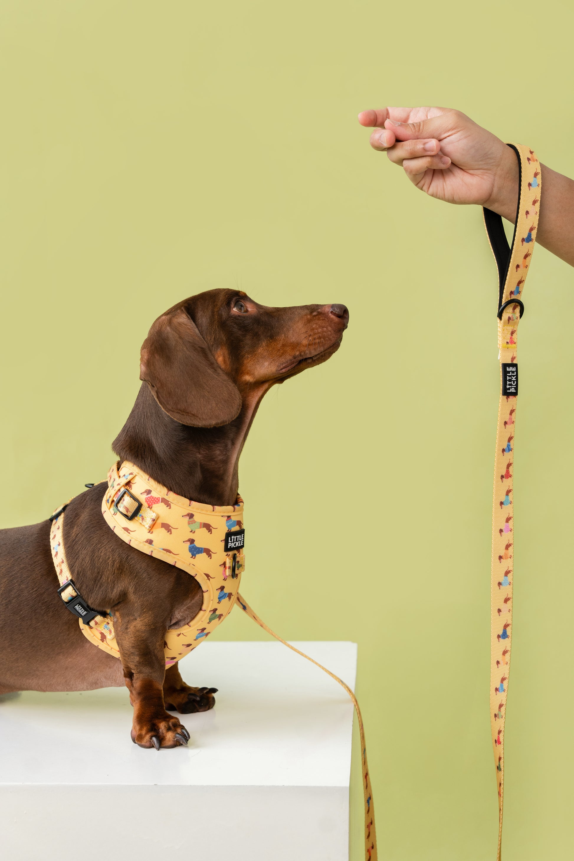 Strut the streets in full dachshund pride with our Yellow Sausage Squad leash – Designed to match the Neo V2 Harness, this leash isn’t just adorable — it’s made with upgraded, sturdier fabric and thoughtful features that make every walk a joy. Whether you’ve got a doxie or just love them dearly, this special edition is for you.